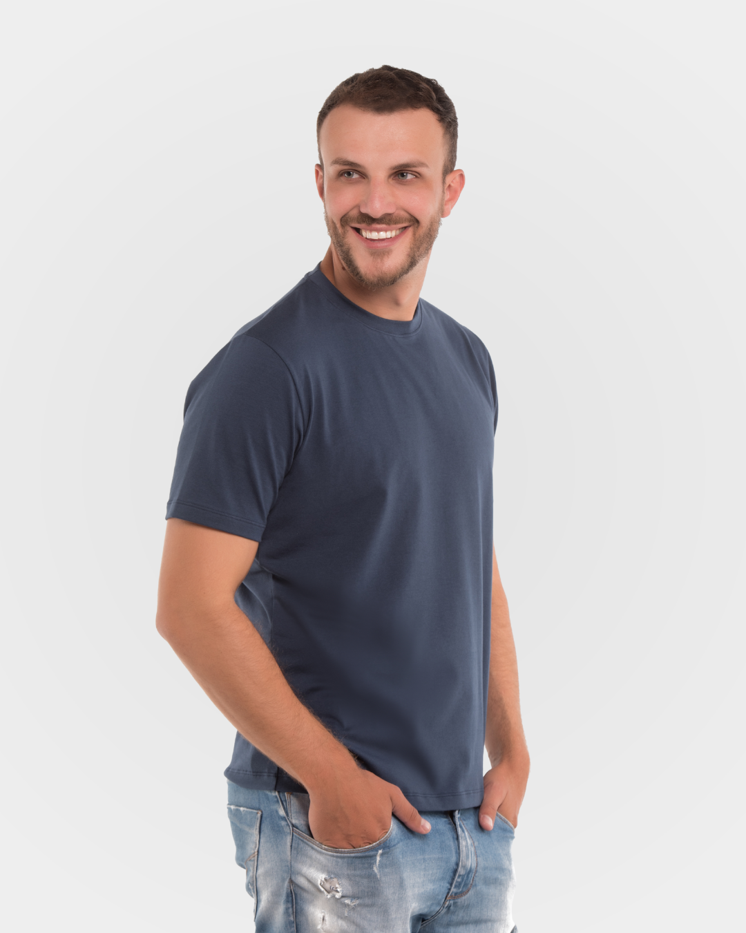 Camiseta de manga curta e gola redonda, com modelagem clássica e excelente caimento, confeccionada em algodão egípcio — reconhecido pela resistência superior, toque confortável e acabamento refinado, ideal para o uso diário.