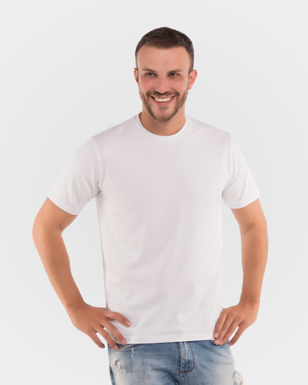 Camiseta Masculina Clássica de Manga Curta Algodão Egípcio - Branco
